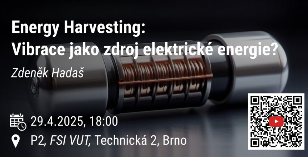 Poslední přednášku v letním semestru povede Zdeněk Hadaš. Zdeněk Hadaš působí na FSI VUT, věnuje se výzkumu Energy Harvestingu, tedy získávání energie z okolního prostředí. Dozvíte se například, jak lze mechanické vibrace využít jako zdroj elektrické energie pro napájení senzorů nebo mikrosystémů. Celá přednáška je nahrána na YouTube: